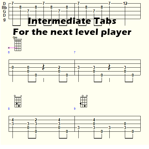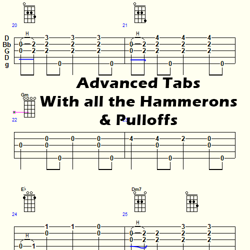- Advanced – Tablature for exactly the way I play it with all the hammer-ons and pull-offs