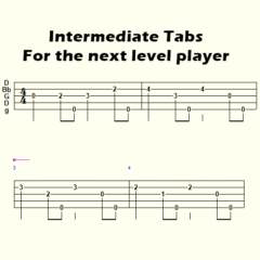 - Advanced – the complete arrangement in clawhammer style with all the hammer-ons and pull-offs you see me play